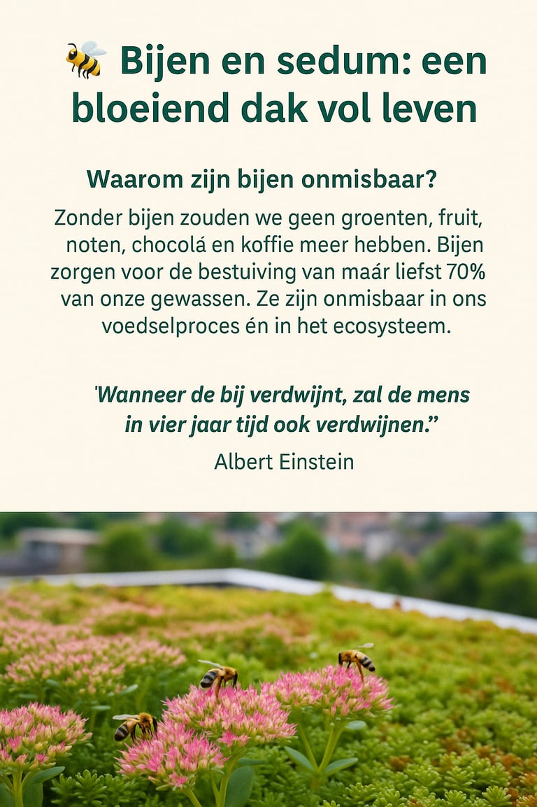 Vooral in steden, waar bloemen en planten vaak ontbreken, vormt een sedumdak een waardevol voedselgebied voor bestuivers. Elk groendak is een stap richting een gezondere biodiversiteit.