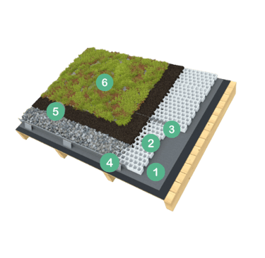 Begroeid met een sedummix in substraat op een vochtspreidend vlies.